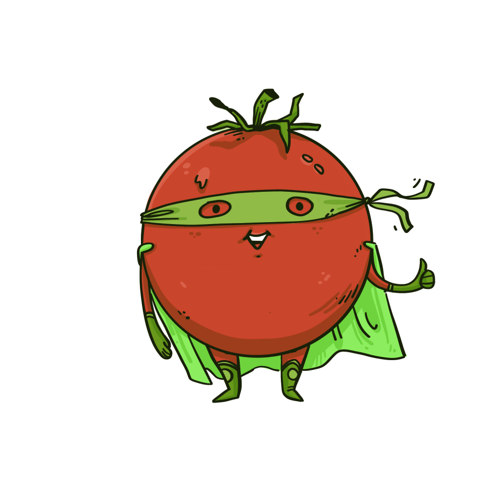 Tomatito – O roșie jucăușă și plină de licopen, care protejează inima și ajută la menținerea sănătății pielii. Tomatito aduce gust și energie oriunde merge, fiind mereu pregătit să înveselească lumea cu glumele lui suculente.