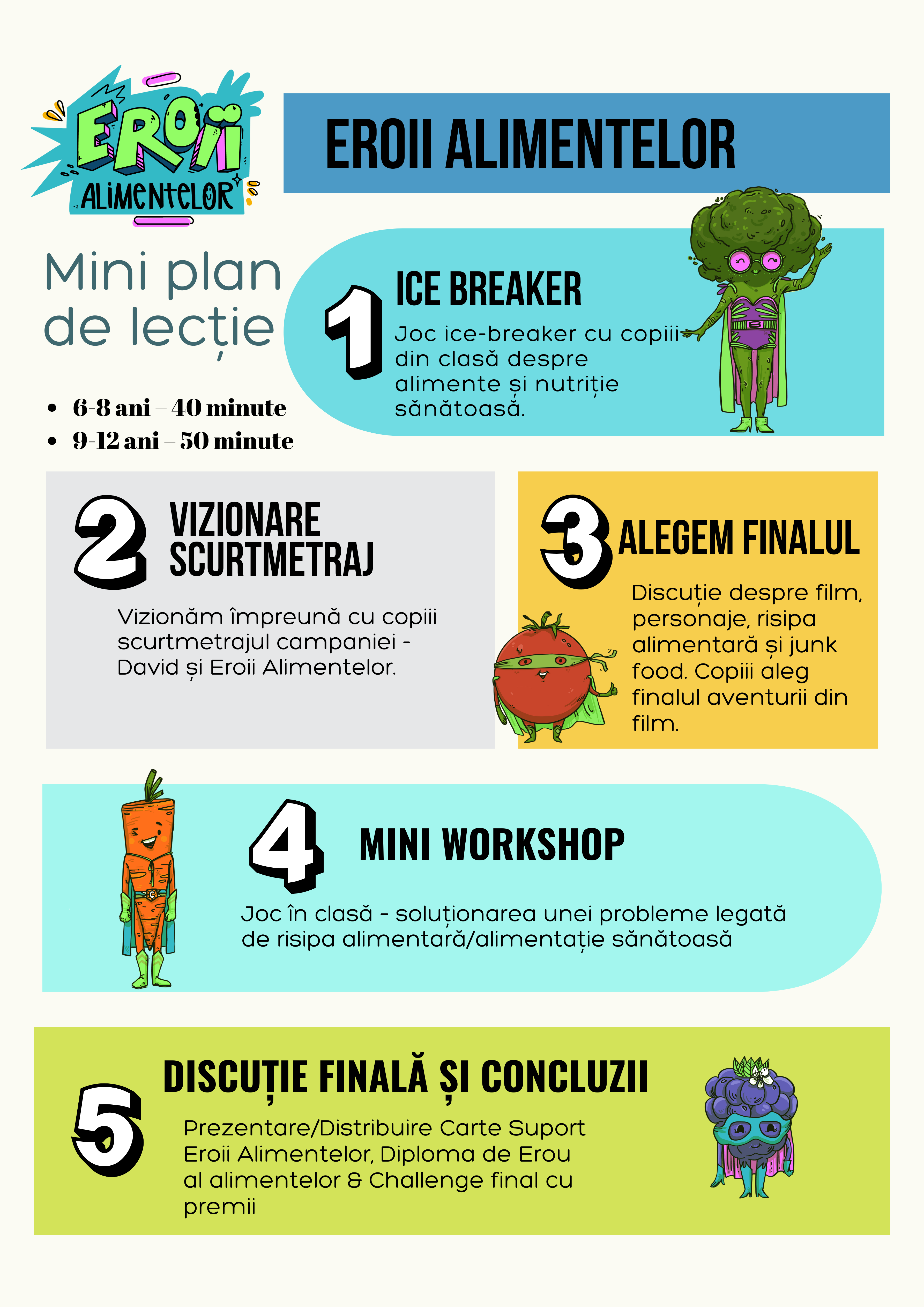 Eroii Alimentelor nu este doar o poveste ci o inițiativă educațională dedicată copiilor cu vârste între 6 și 11 ani, ce are ca scop formarea unor deprinderi sănătoase într-o perioadă critică a dezvoltării fizice și cognitive.