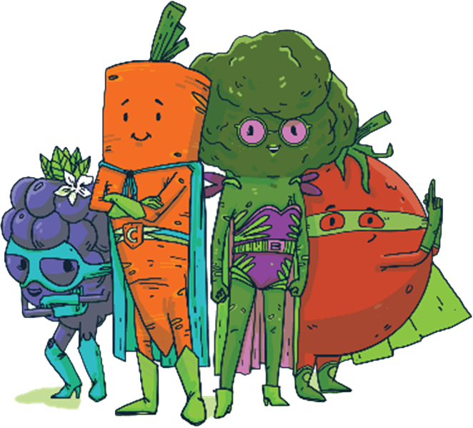 Eroii Alimentelor și-au unit forțele pentru a combate răul provocat de Dr. Junk Food, un personaj malefic care voia să înlocuiască fructele și legumele cu alimente nesănătoase.